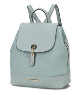 · Design with luxurious gold tone embellishments, a bag that has your back, our sophisticated Laura Backpack is a lightweight, hands-free style with a modern design. This backpack has an organized three-compartments interior, one of them with zipper closure, and multifunction pockets. The Laura Backpack is crafted of polished grainy vegan leather matching with the same color smooth vegan leather in the flap, bottom, and straps. The Laura Backpack has adjustable straps with gold-tone buckles. It has a beautiful gold tone eyelet on the flap and magnetic snap closure. The Laura Backpack has metal feet to keep the bag upright position and has a semi-slouchy silhouette. The Laura Backpack has our signature Mia K. Collection metal plate emblem in the front for decoration