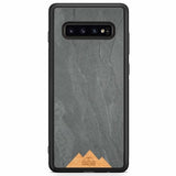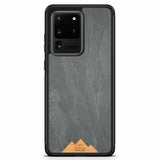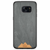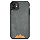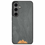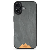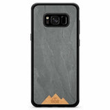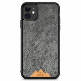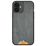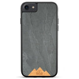 The texture of the mountain stone phone case is truly unique and has patterns that are one of a kind. The beautiful sparkly grey colour resembles the stones you encounter on your adventures or conquering a mountain. And the light sparkles that come with the case add that special feature that no other material has. We tied it all together with an alternated version of our logo, a three-peak mountain out of warm wood, that adds personality to the Mountain stone phone case.